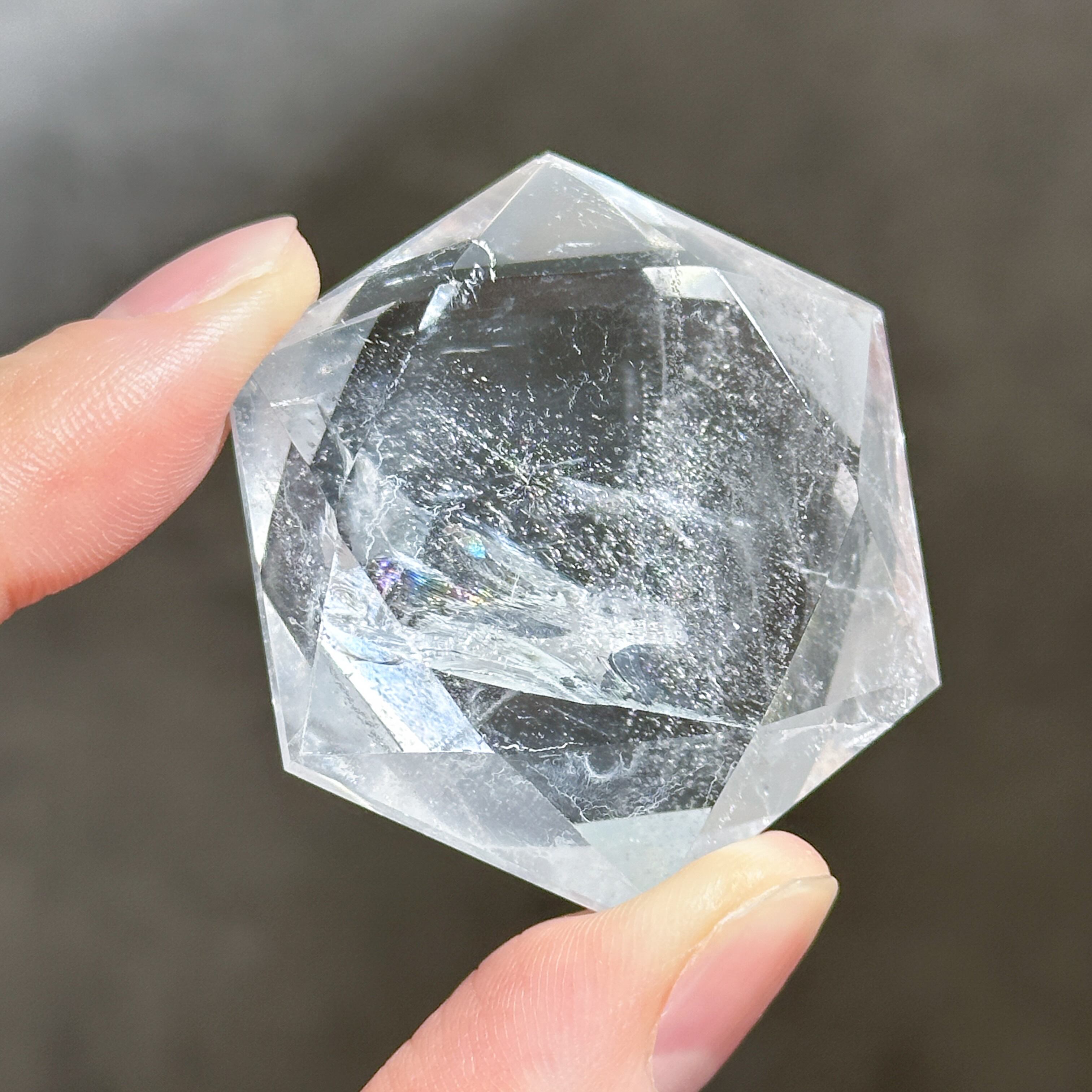 虹◎台座付き【高品質】ミナスジェライス産ヘキサグラム×ヘキサゴン(神聖幾何学)クリアクォーツ 六芒星カット21◇Clear Quartz hexagram◇天然石・鉱物・パワーストーン