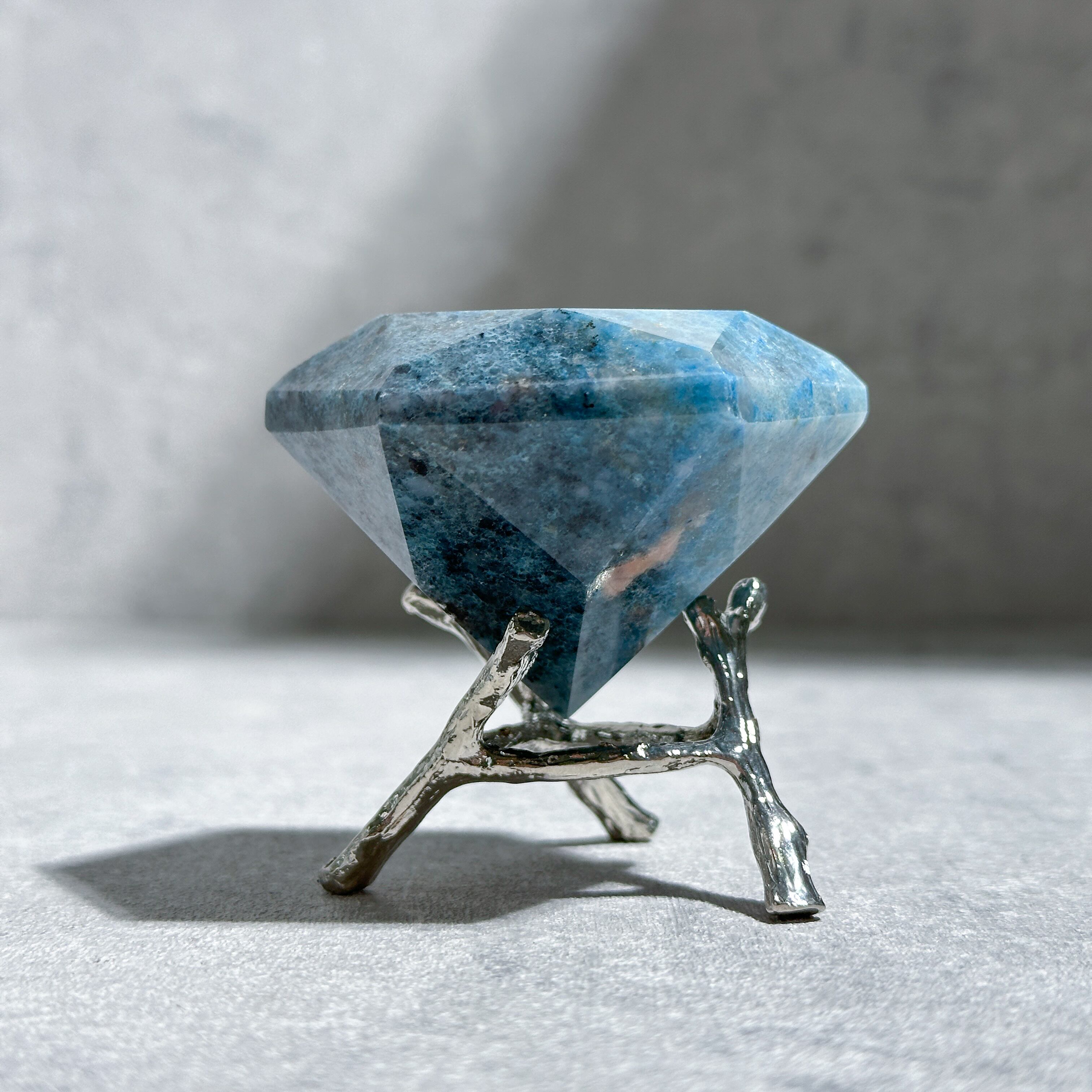ここでは「トロレアイト」と呼びますが、トロレアイト(青)・クォーツ(白)・ラズライト(濃い青)が混じったもののようで、曲線を描くグラデーションと引き込まれるような色合いを持つ鉱物です。面によって異なる表情を見せる、世界に二つとないお品です。