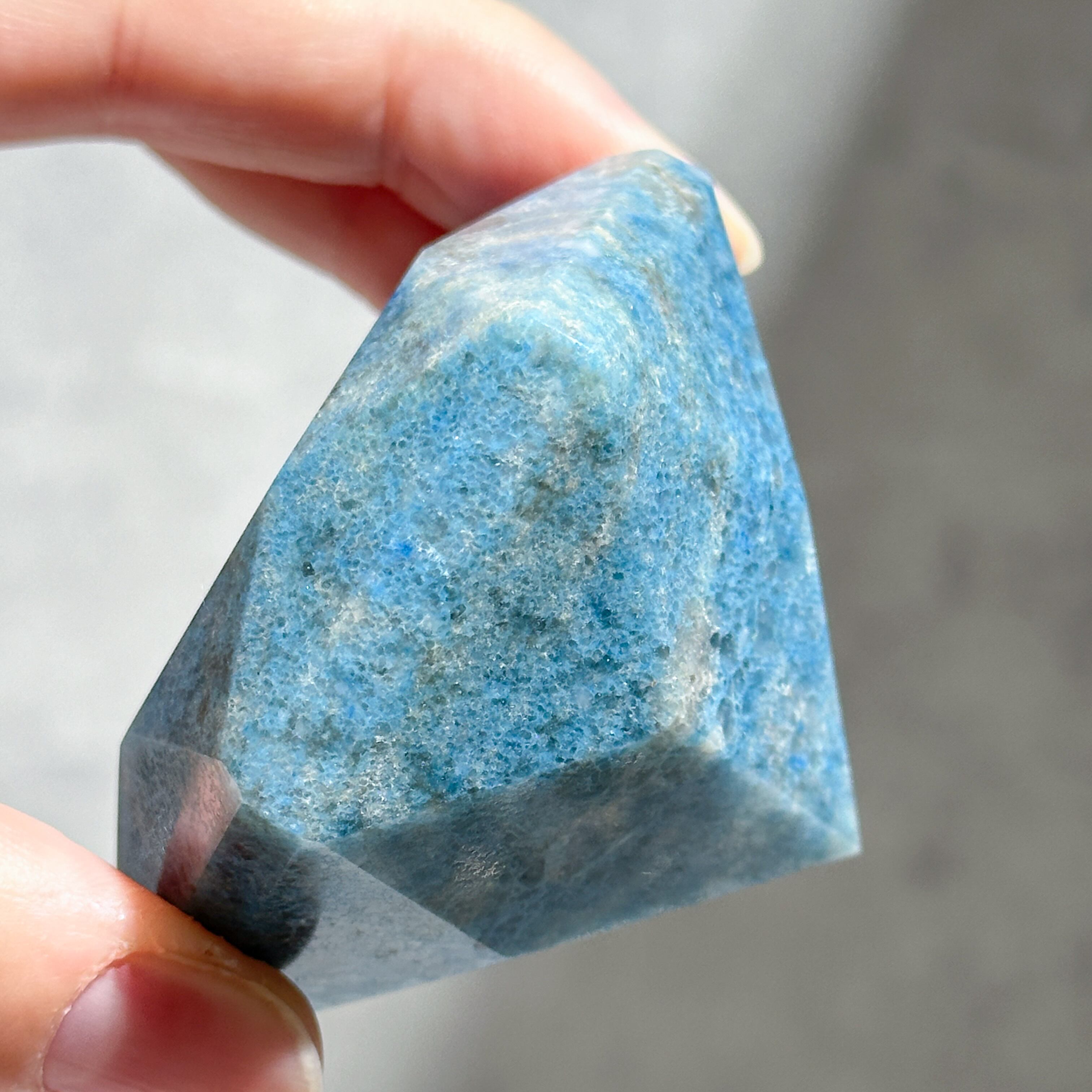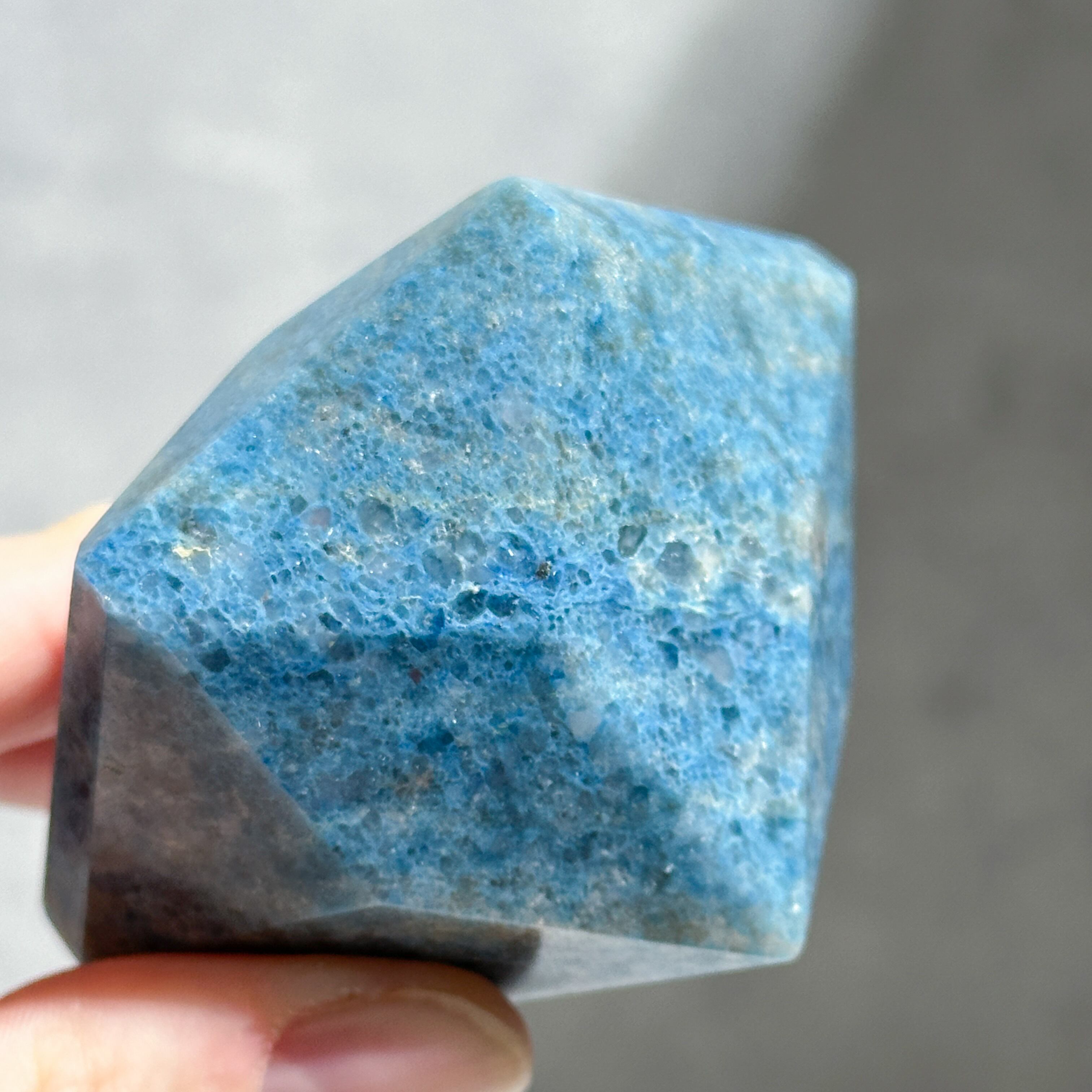 ここでは「トロレアイト」と呼びますが、トロレアイト(青)・クォーツ(白)・ラズライト(濃い青)が混じったもののようで、曲線を描くグラデーションと引き込まれるような色合いを持つ鉱物です。面によって異なる表情を見せる、世界に二つとないお品です。