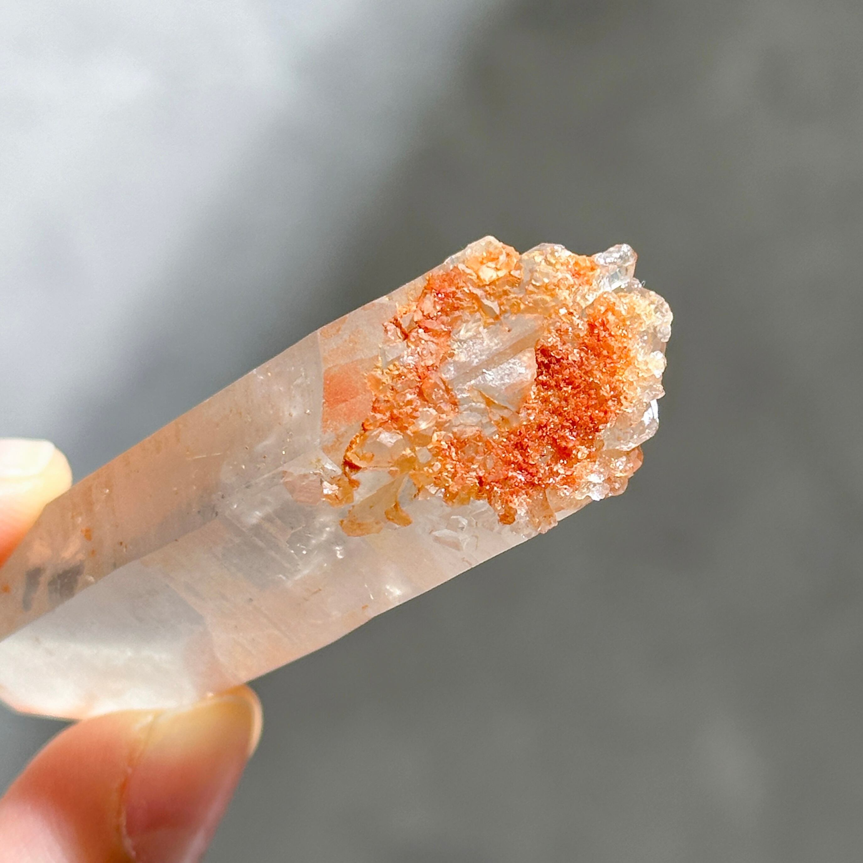 タンジェリンクォーツは、水晶(クリアクォーツ)の表面にヘマタイトが付着して、