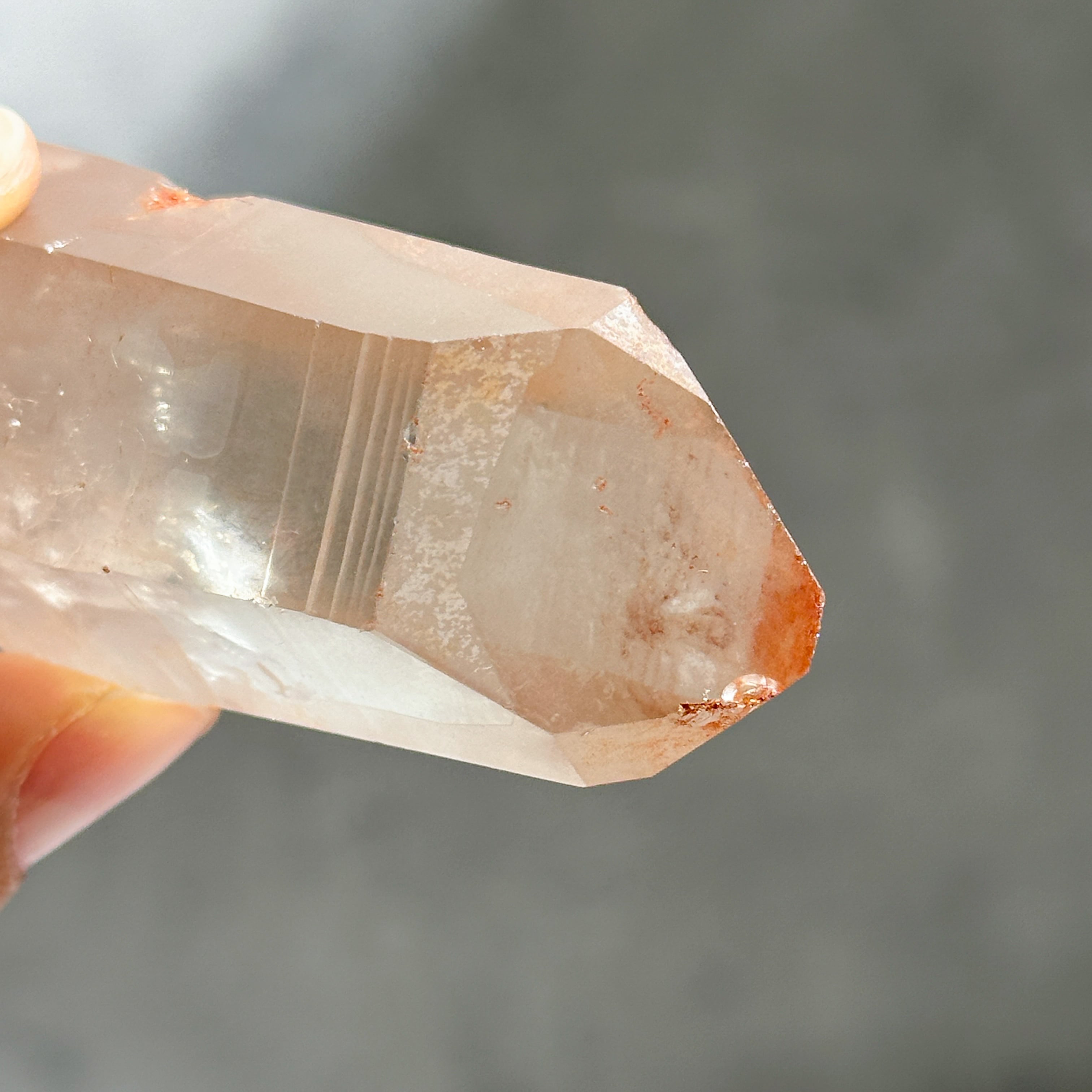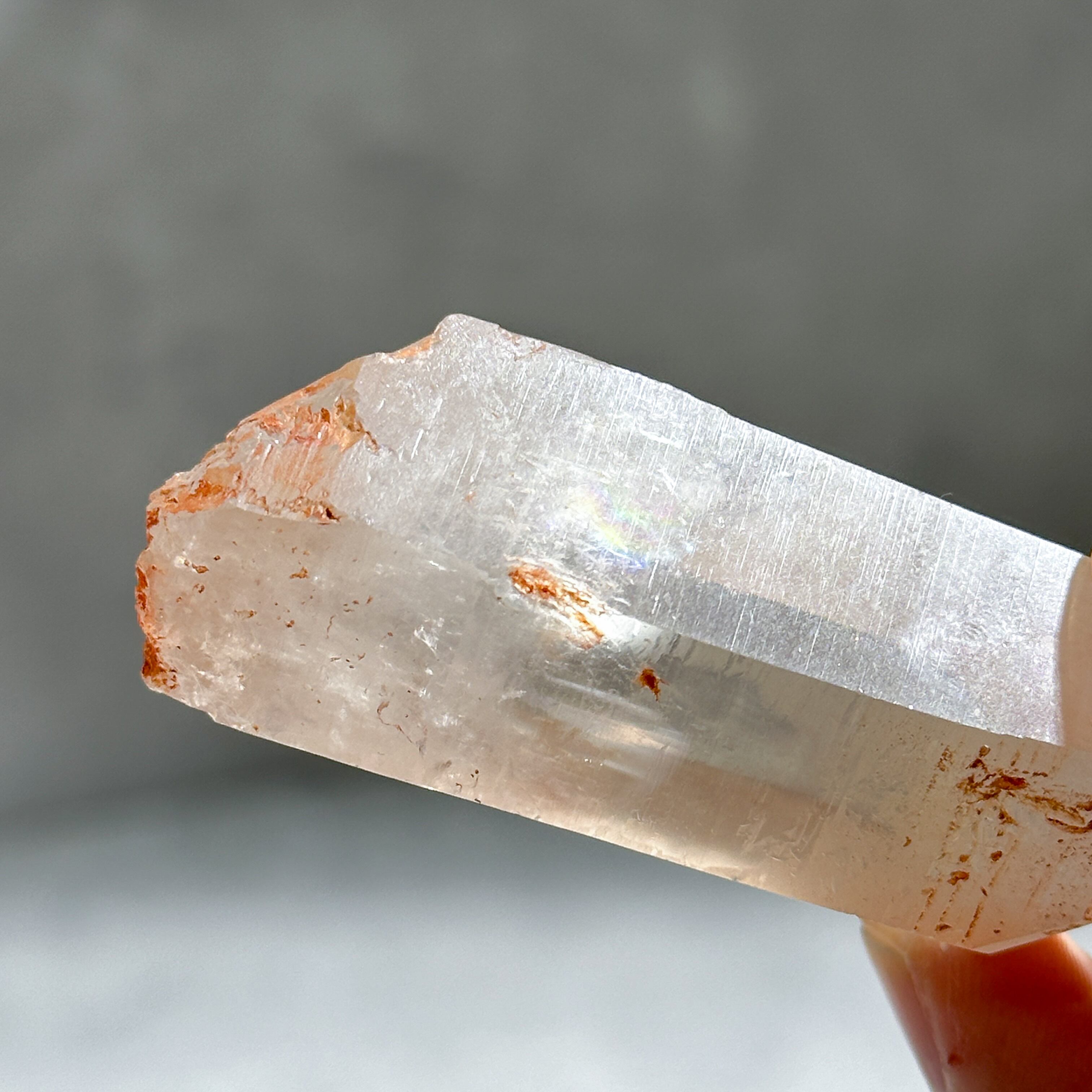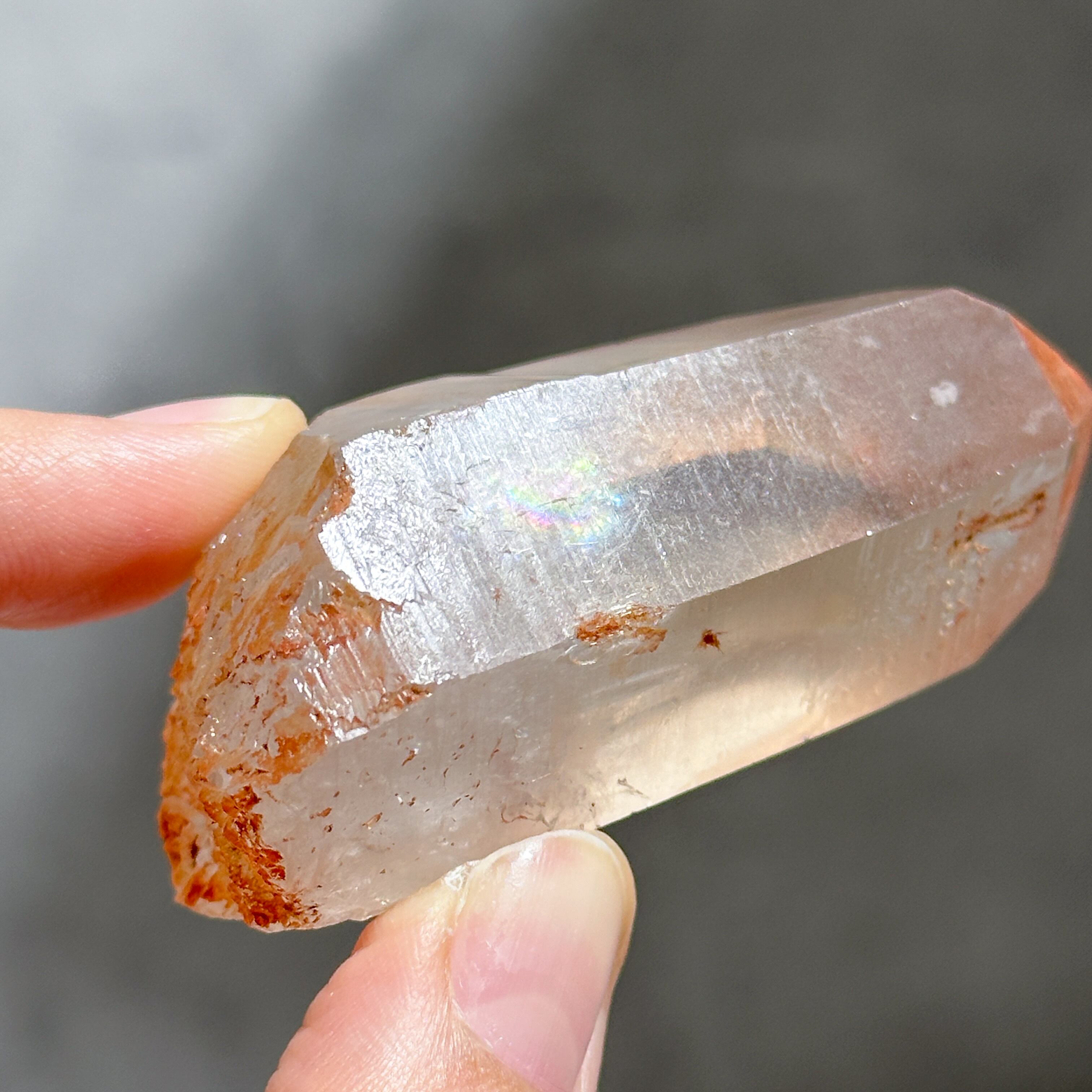 タンジェリンクォーツは、水晶(クリアクォーツ)の表面にヘマタイトが付着して、