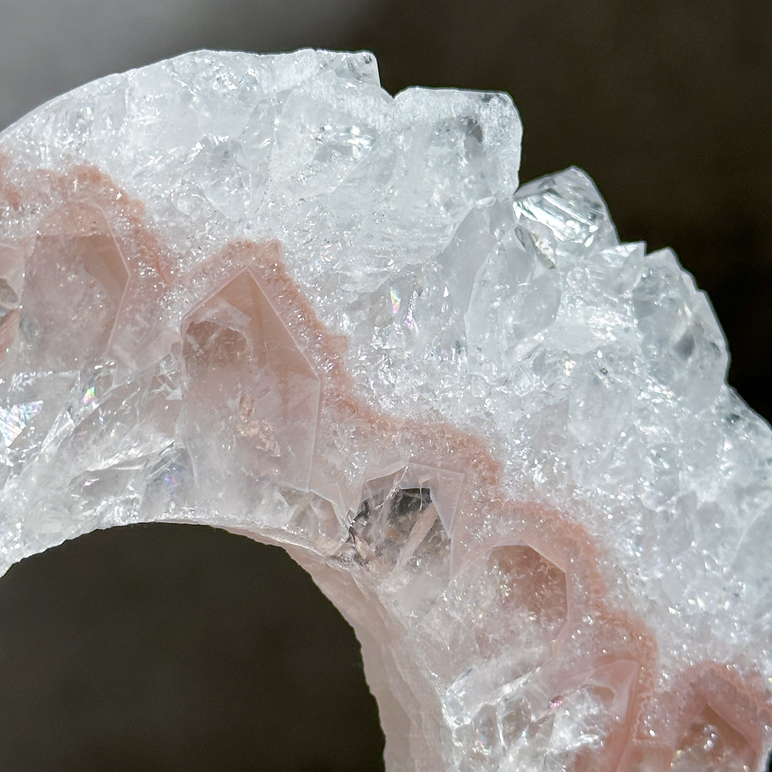 アゲート(瑪瑙)上にクリアクォーツが結晶化した原石をスライスし、