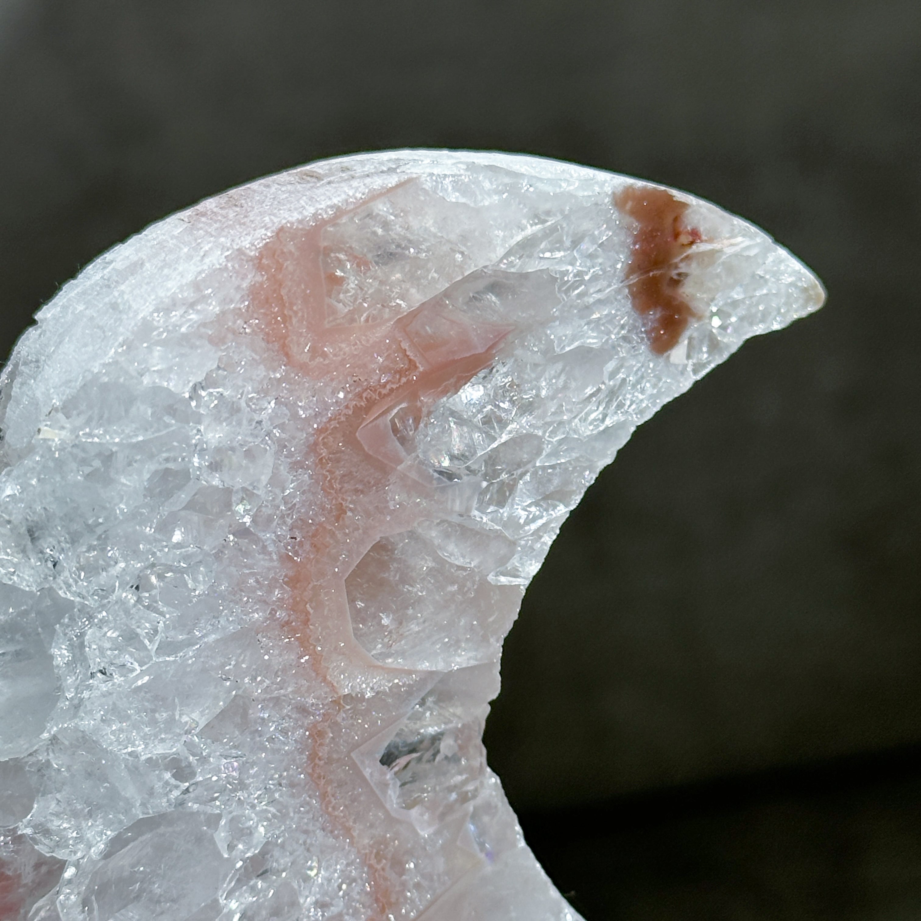 光に当てると、スライス面に細かな虹が見られます。