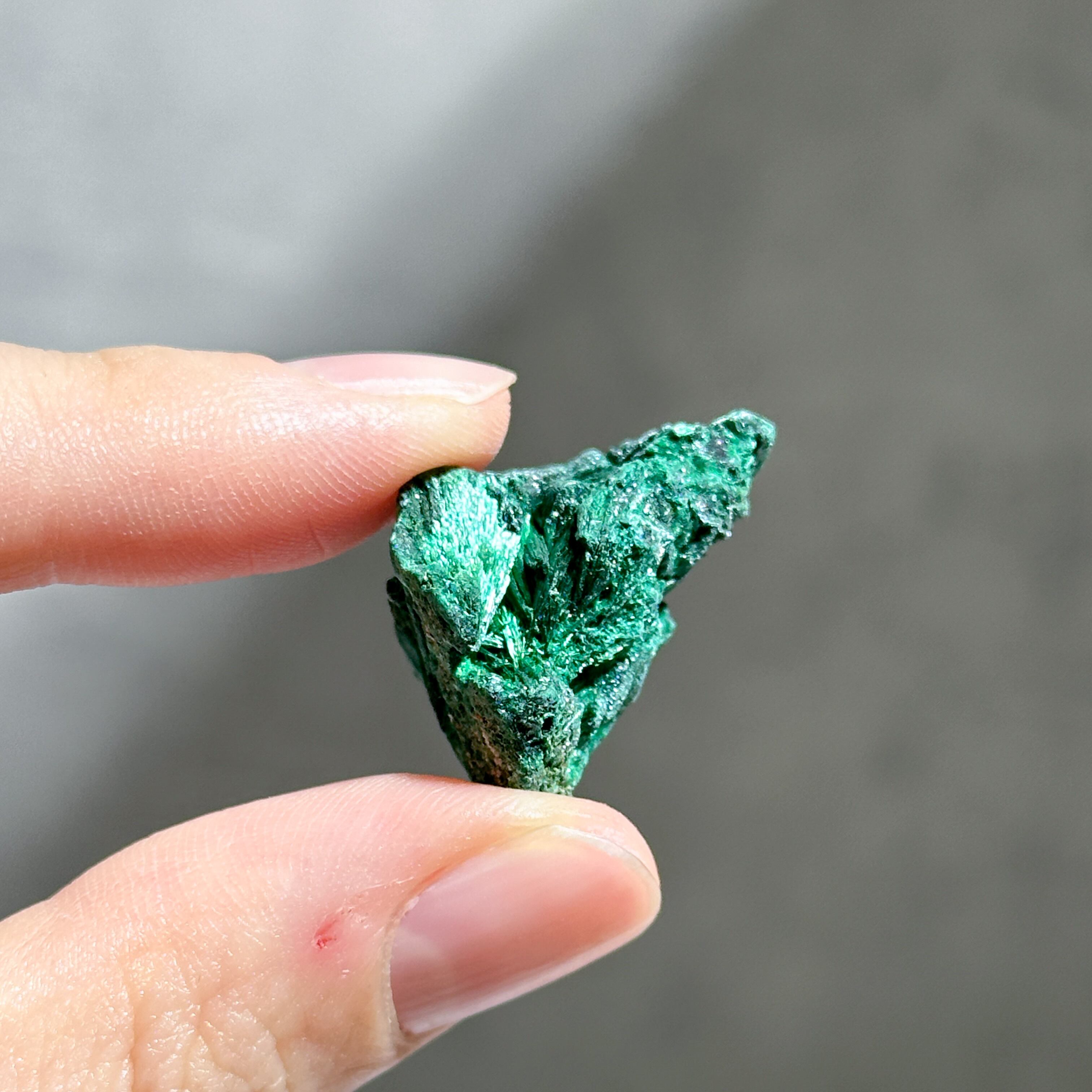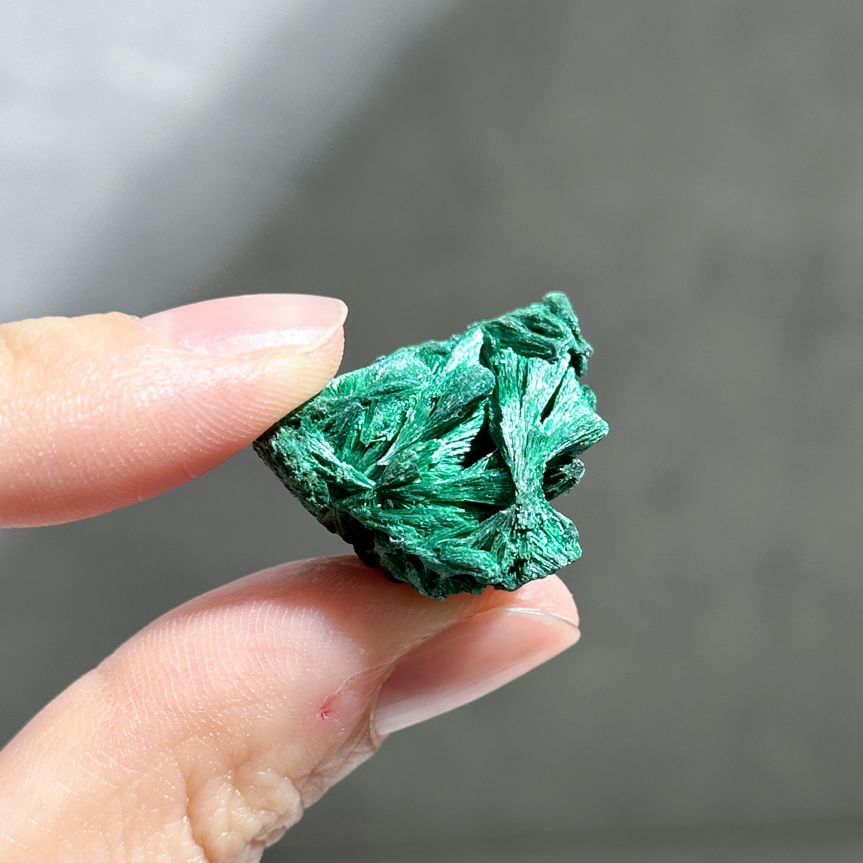 今回ご紹介するマラカイトは、繊維状の結晶がクラスターになったもの。