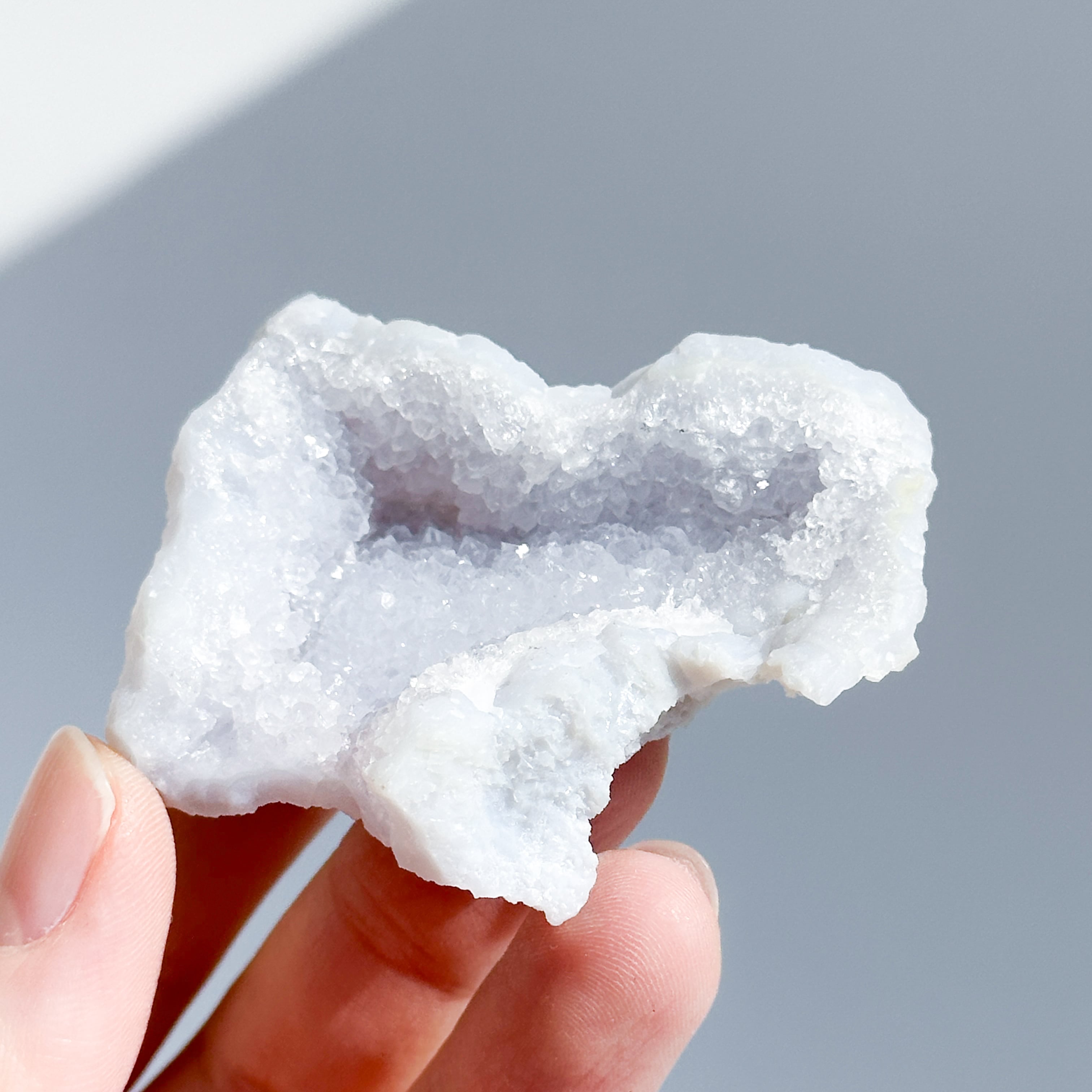 ブルーカルセドニーの優しく青みがかった乳白色は、見る人の心を癒します。