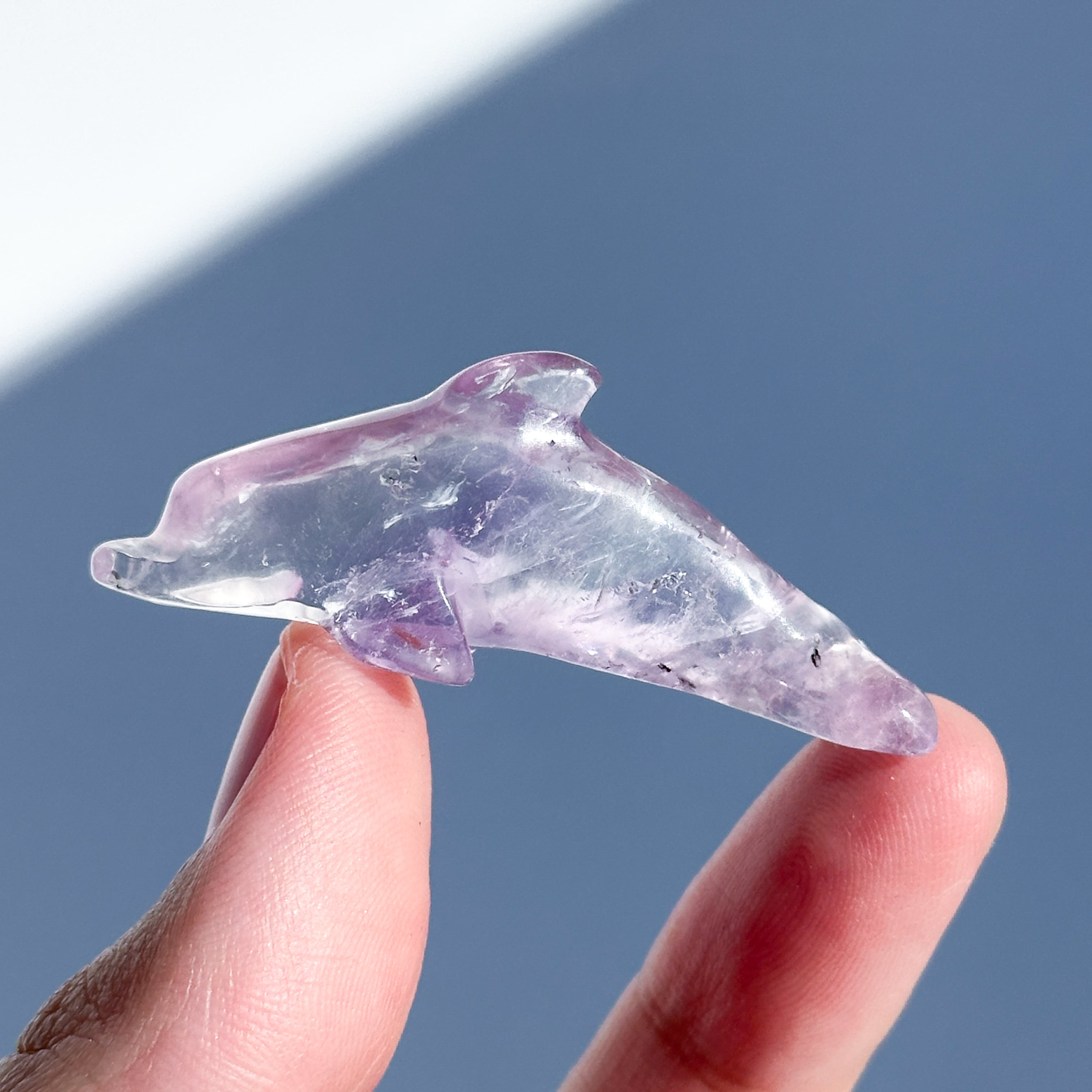 ファントムアメジストを、ミニサイズのイルカ型に研磨したものです*