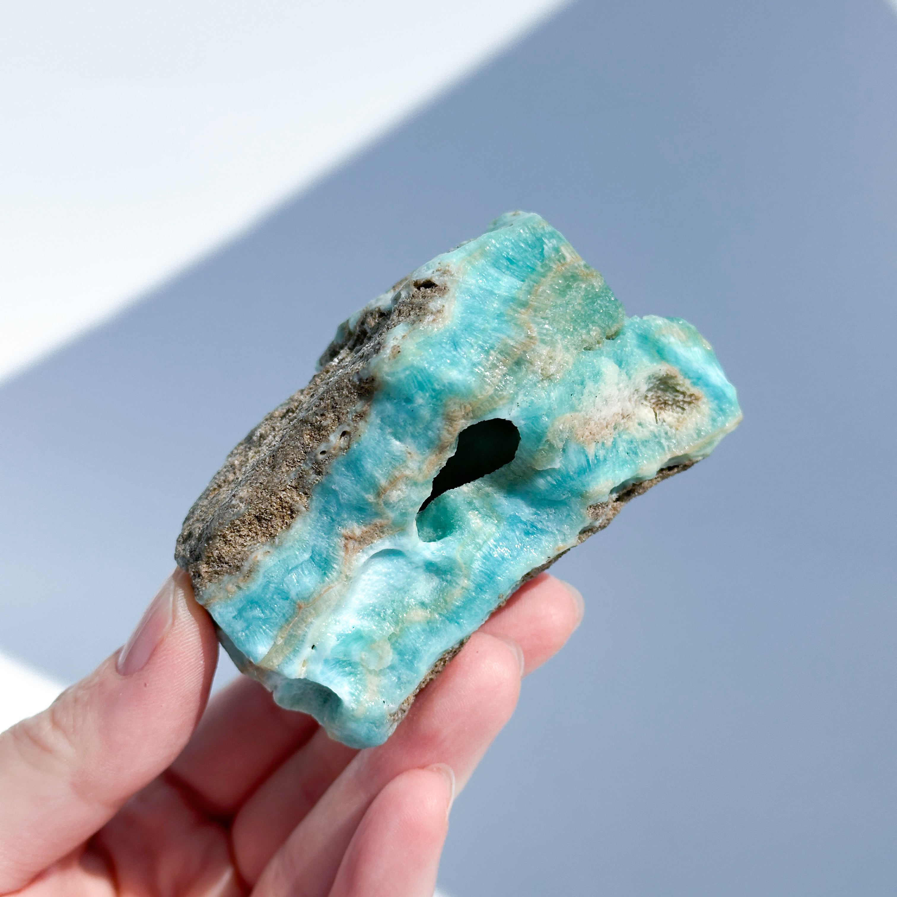 爽やかなブルーが目を引く、ブルーアラゴナイト。
