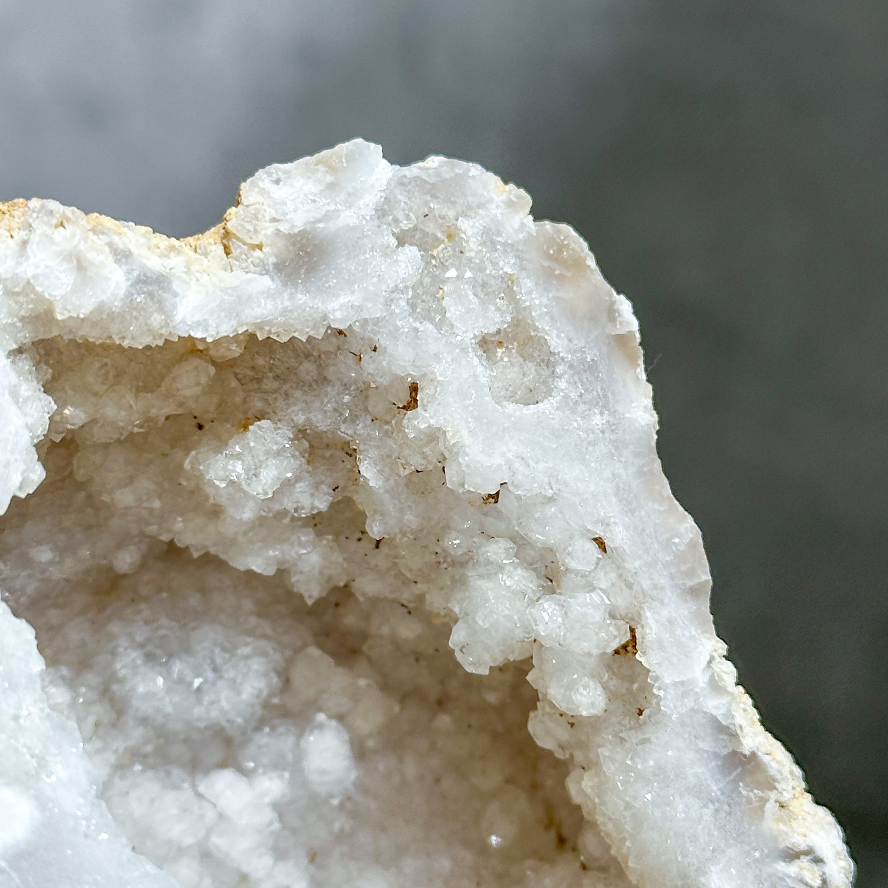 こちらの水晶のジオードは無数の細かな結晶が煌めき、水晶らしい清らかで優しい光を放っています。