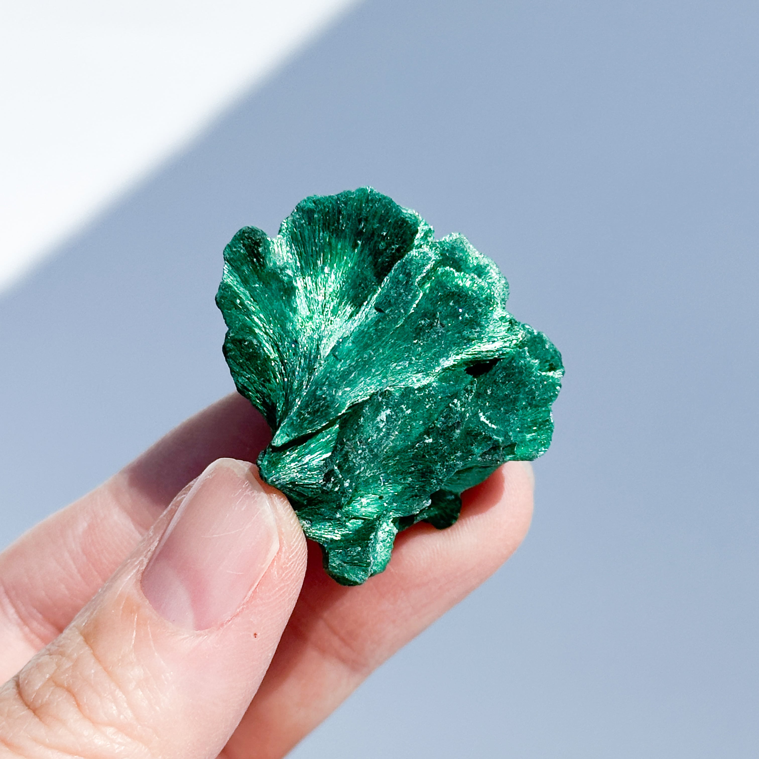 今回ご紹介するマラカイトは、繊維状の結晶がクラスターになったもの。
